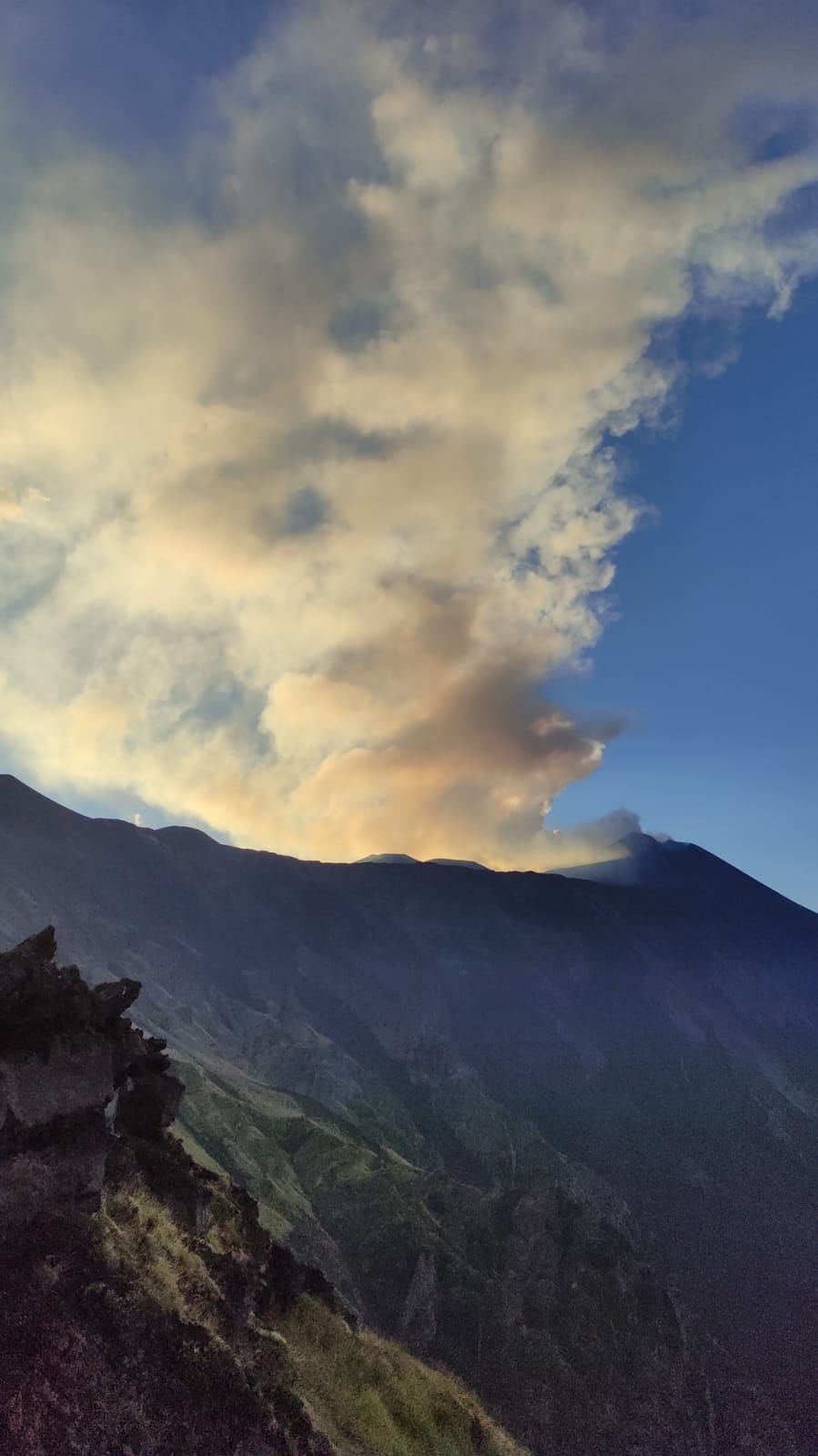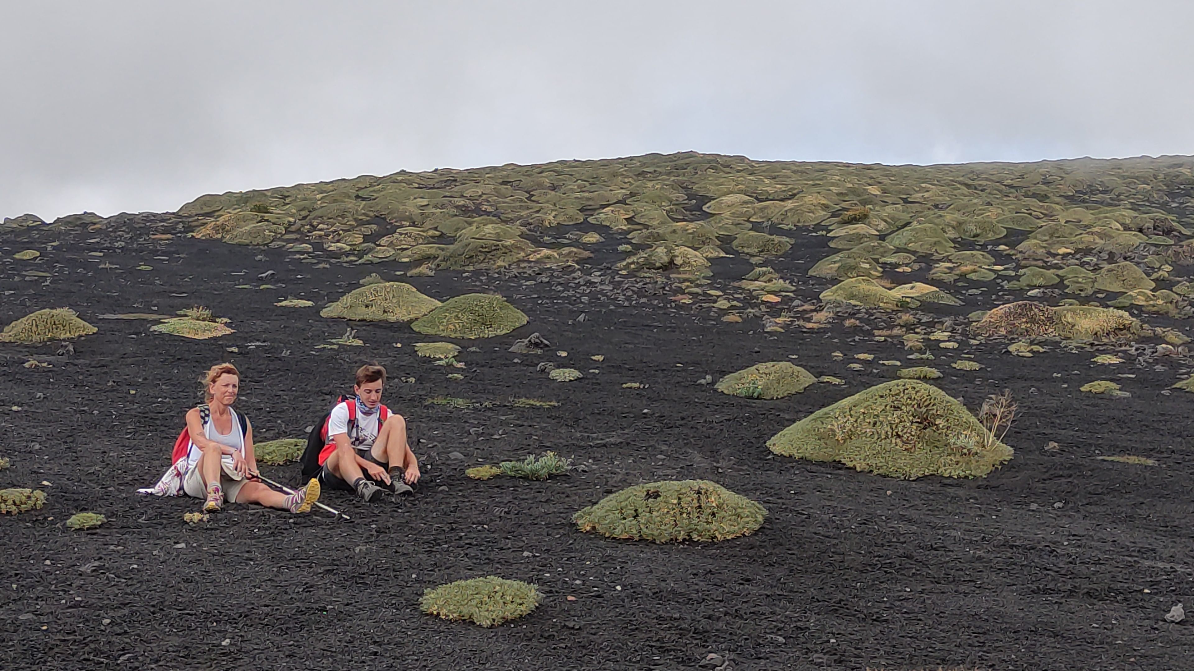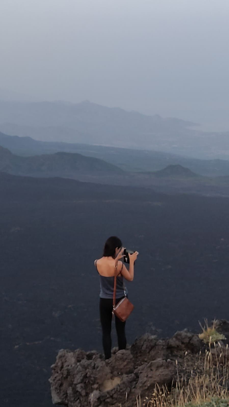 Abbastanza agevolmente, solcando i pendii sabbiosi colonizzati da grandi cuscini di astragalo, si raggiunge la cresta della Schiena dell’Asino, un tratto di quel recinto montuoso lungo 18 chilometri che racchiude a ferro di cavallo la Valle del Bove, che assume le sembianze di un anfiteatro naturale. Quel che si ammira è da rimanere senza fiato, con il solo sibilo del vento a far da sottofondo.